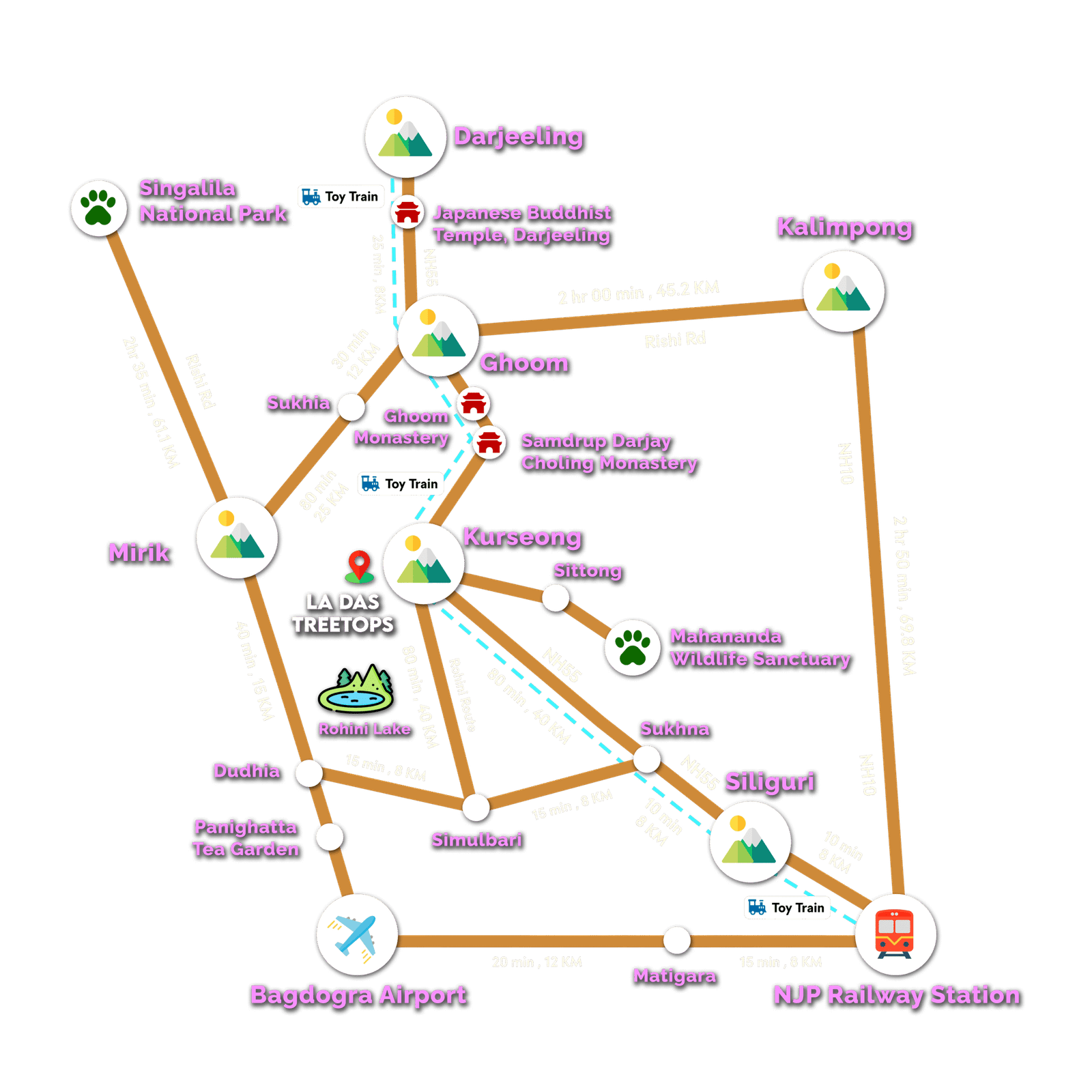 There are many exciting places to visit near La Das Treetops. The entire region is a tourist heaven. And our resort serves as a gateway to all these interesting hotspots, giving you easy access.”